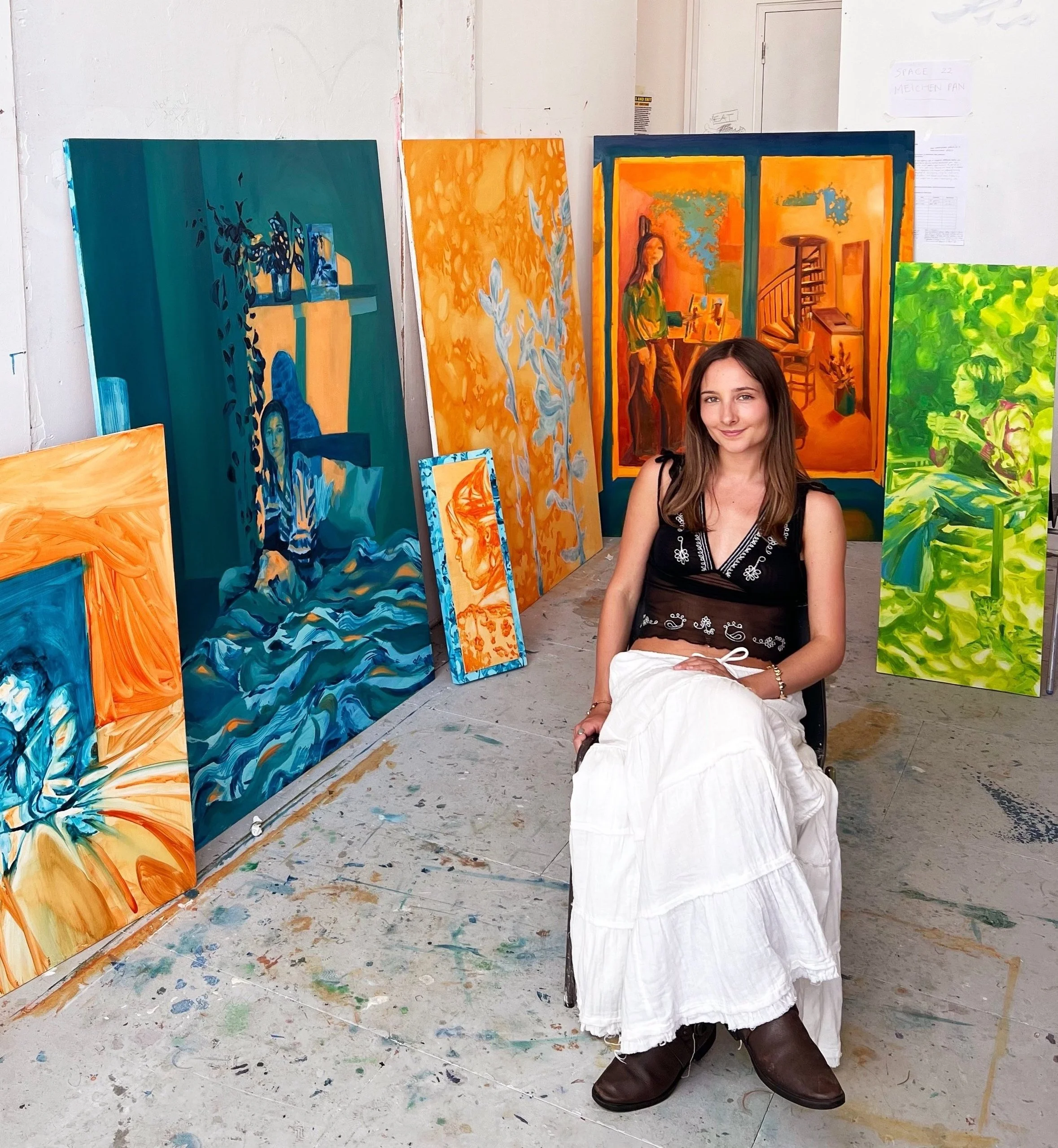 Rooted in a fascination with film and the cinematic, Milena’s practice concerns the politics of looking and the construction of subjectivity. Through painting, she explores how figures, particularly female subjects, are framed, perceived, and contained. This focus is deeply personal; growing up in a family of four sisters, she often draws on her female relatives as muses, finding in them both intimacy and strength. Abstraction becomes a way to blur and fragment these representations, figures emerge and dissolve through gestural brushwork, echoing the instability of how subjects are seen and known. Her work reflects on how identity and experience are negotiated through visual language, opening a space where the gaze is unsettled and where perception and control intersect through the act of watching and being watched.